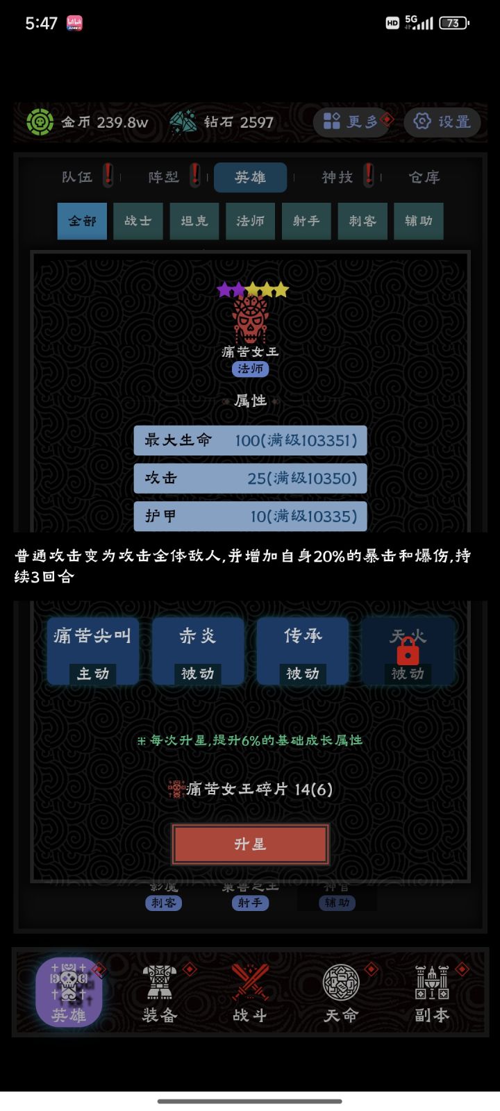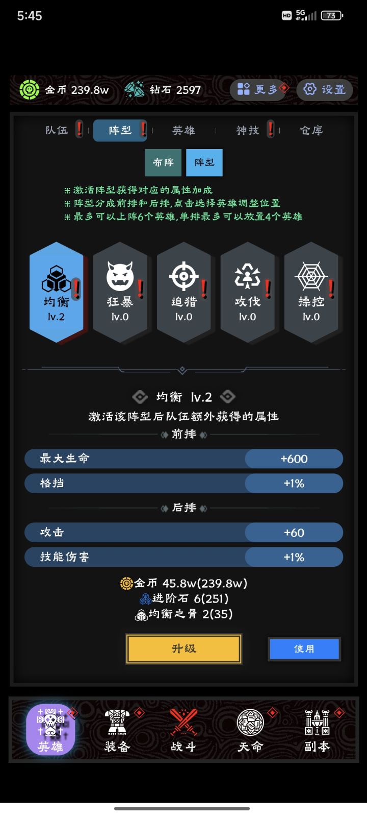 游戏属于把人骗进来杀啊,哥们你这个游戏的数值是认真的?2000层以后每上一层那怪的攻击蹭蹭上涨,跟开闸放水一样,英雄的属性涨幅跟小水滴一样,已经无力吐槽了,一天半一层都没爬上去,1000W金币砸下去连个响都没,我那可怜的永久卡和月卡,才几天就成蚊子腿了