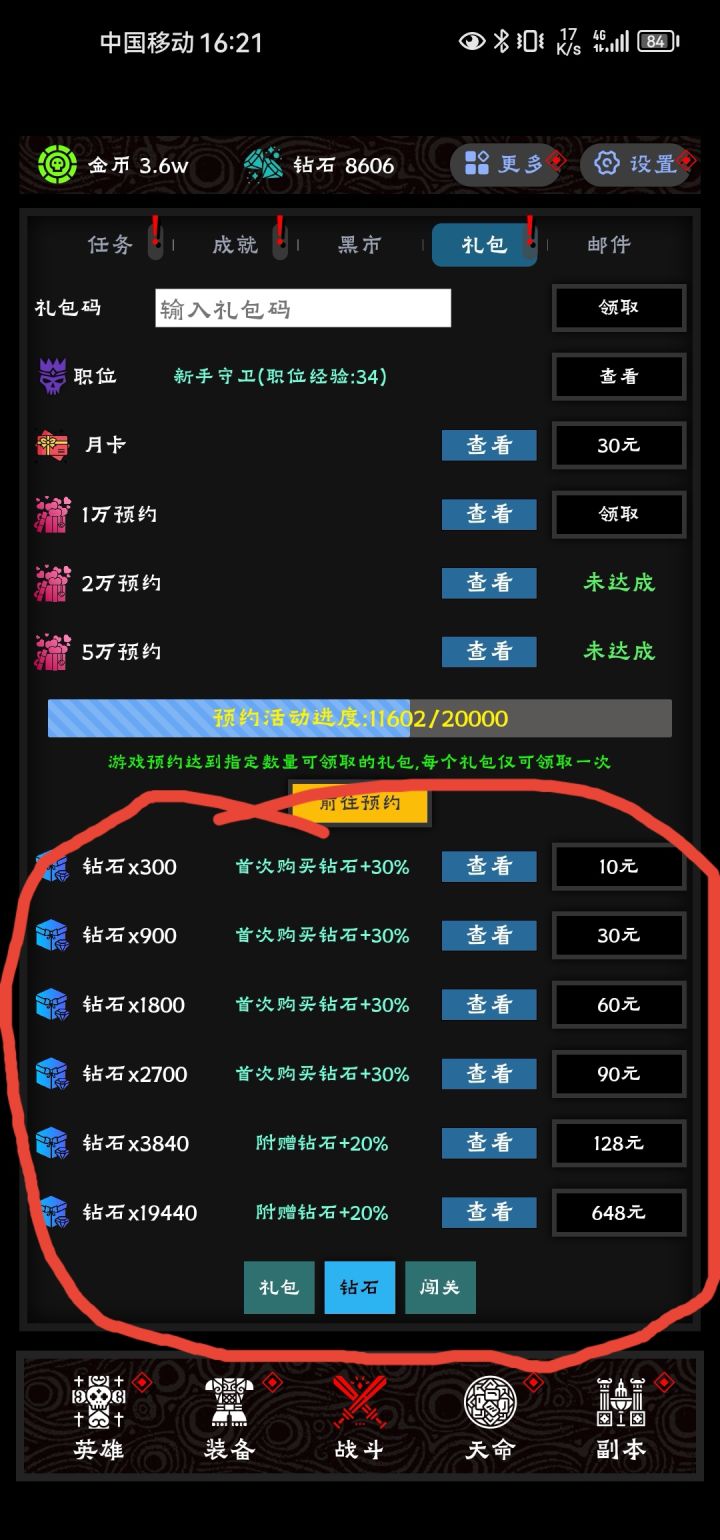 开荒礼包码*20 礼包内容(钻