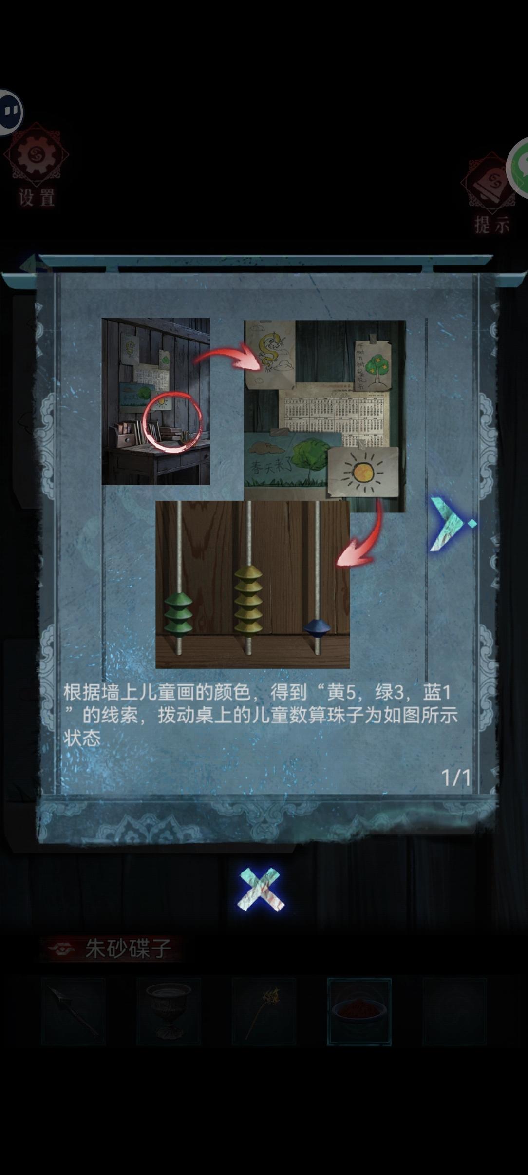 |||||第二章:寻灵[三清殿外]1.点击石鹤,查看它身上的布条;拿【石头鱼】换取【阳鱼】2.点击三清殿的门,放上【木凳】,摘下荷包,获得【阴鱼】3.点击门上的凹槽,嵌入【阴鱼】和【阳鱼】,打开门,进入三清殿……✄……✄……✄……✄……✄……[三清殿]4.查看桌子上的卷轴5.点击功德箱上的密码锁,查看游戏说明,完成小游戏🔶①木条可原地旋转调整横竖朝向,只有横竖朝向相同的