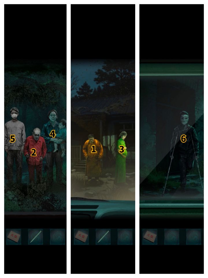 首先在拿起这个钳子,然后开右手边的大门,然后发现里面是黑的,然后去大巴上拿火柴盒和烟,还有这个包,拿到了纸擦笔进入房子,然后用火柴点亮拿抹布和螺丝刀螺丝刀开柜子,拿到清洁剂用清洁剂和抹布然后根据得到的线索,将花色对应的数字相加,得到密码:9869,(图1),得到车钥匙回到大巴上,把车钥匙插上,然后打开雨刮器,以及把笔插入旁边的小孔(图9),点一下广播根据广播内容,顺序如图2,然后