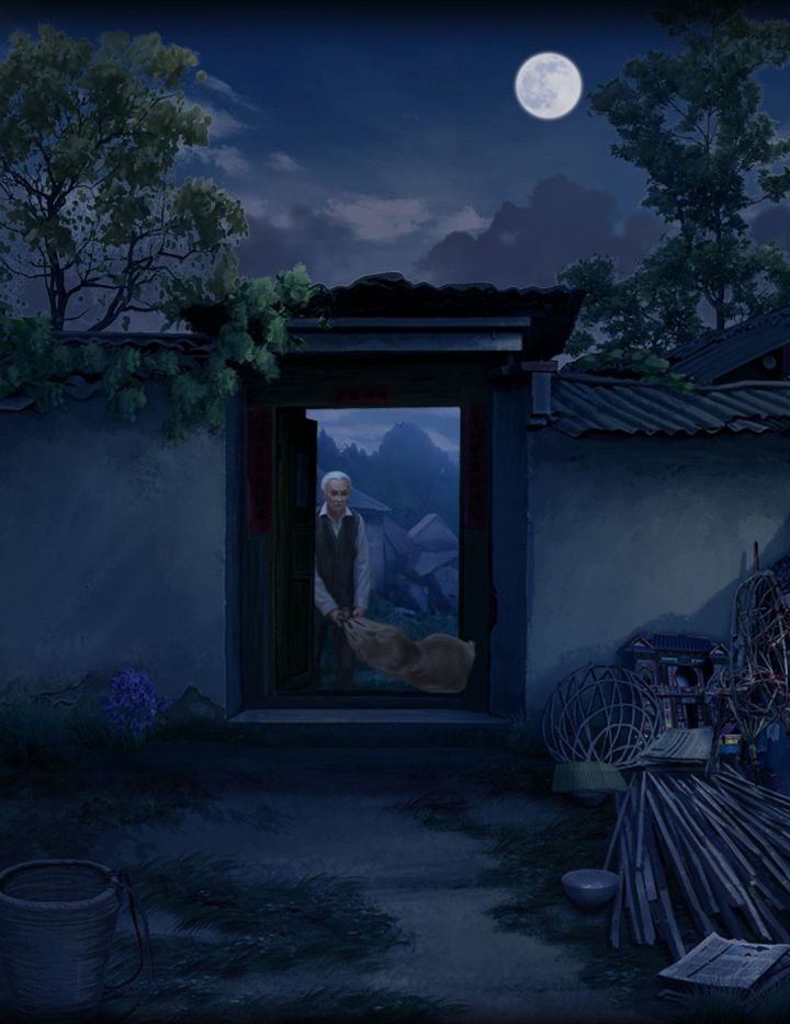 1、左边大树下获得抹布和晾衣杆,使用抹布蘸取小推车上的水,可擦掉玻璃上的污渍,看见左边为月亮,右边为太阳的图案,使用湿抹布擦掉大门口石碑上的污渍,看见一段文字,根据文字描述点击墙上的按钮,墙壁上的砖块脱落,获得钥匙。2、使用晾衣杆取下大门左边的灯笼,用它靠近门锁,纸人被吸附进去,使用钥匙开门,进入院内。3、根据右边窗户上的剪纸展示的含羞草开闭顺序,点击左边花坛的含羞草,获得铁钥匙。4、使用铁