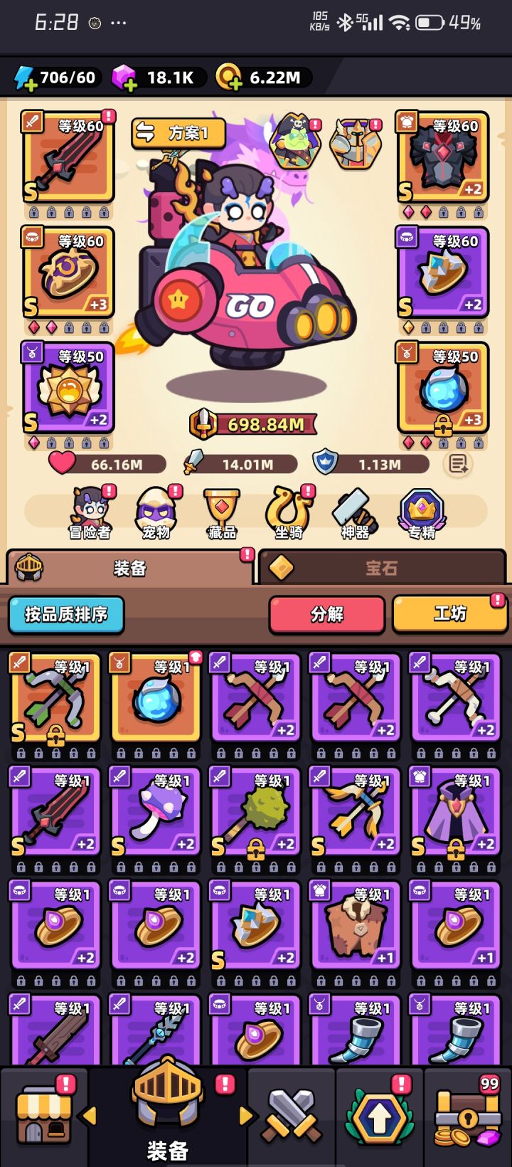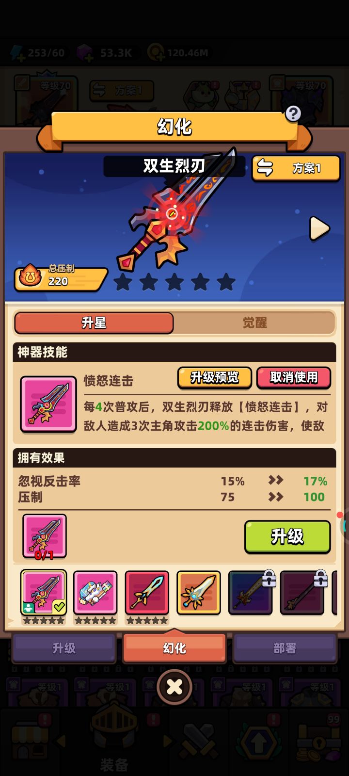 装备至宝需要玩家佩戴了对应的装备才能发挥效用。你有了SS级武器至宝,还需要佩戴上对应的SS级武器才行。要把S级装备升级成SS级装备,该S级装备必须是传说(橙黄)或神话(赤红)品阶的,还必须有60个神兵魔方,以及足够的神铸钢材和神铸魔方。升级步骤是:主界面~装备界面~工坊界面~装备铸造界面~SS级装备和S级装备的选择~铸造。