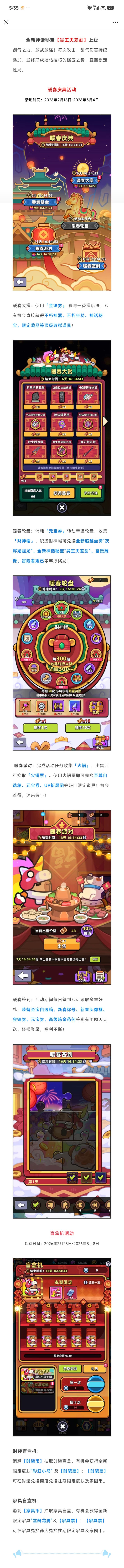 从今年除夕开始、为期半个月的【暖春庆典】活动就要开始了,附上其官方介绍的截图,以供参考。谢谢。