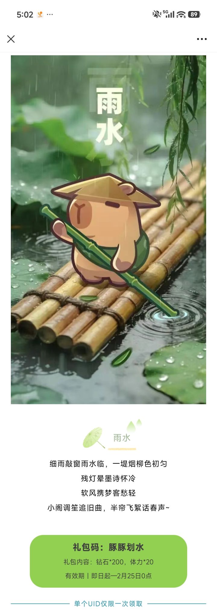 最新国服兑换码(雨水):豚豚划水