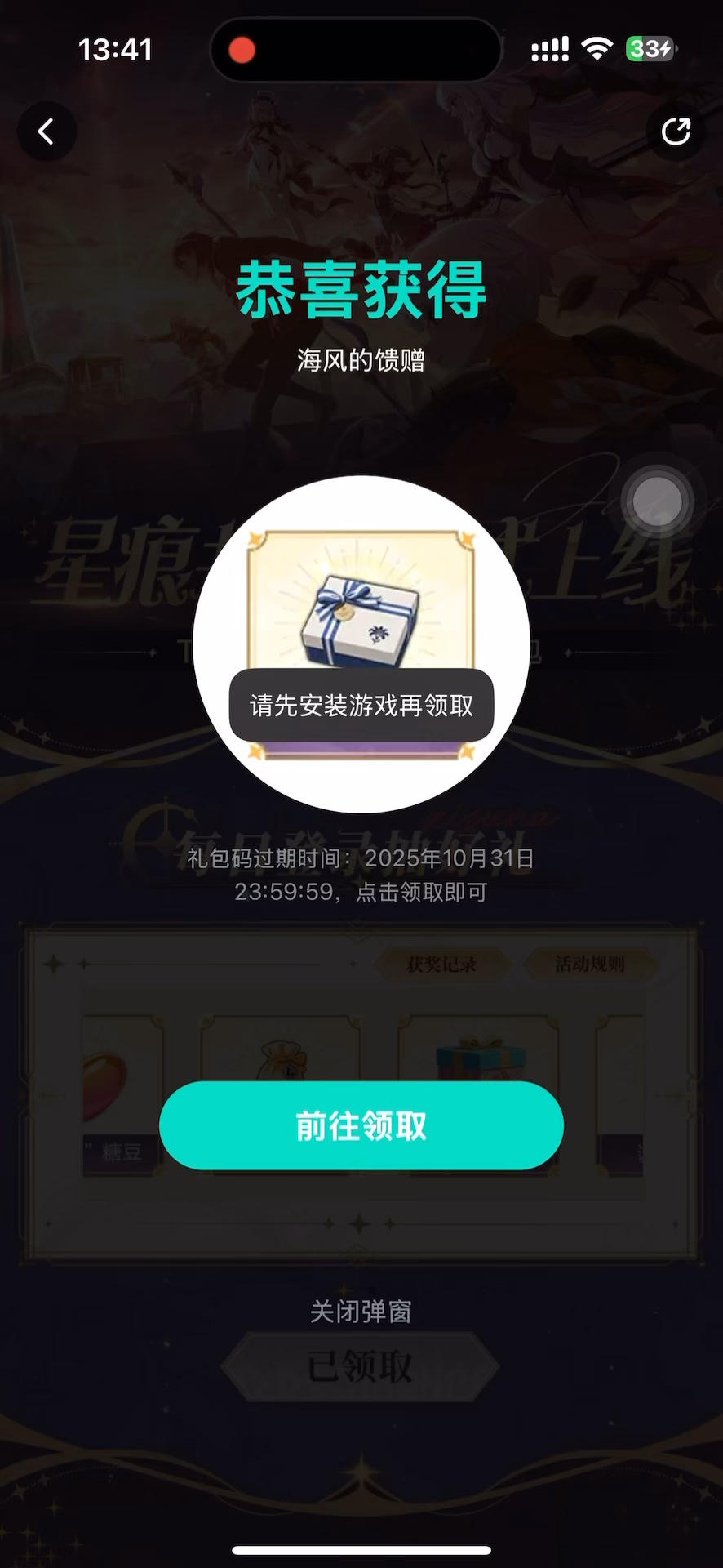 拜托哪位大神知道请告诉我,提示安装游戏,游戏都一直在玩就没办法领取 #星痕共鸣