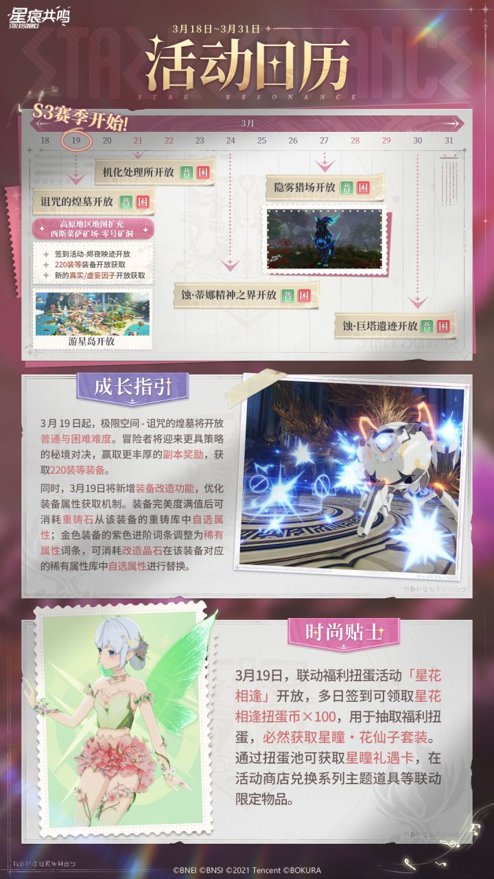 3月19日,《星痕共鸣》赛季迭代将至,「烬空回响・虚妄与真实的协奏」赛季重磅开启! 100抽直送,联动时装抱走!200+家具直送,痛屋家装抱走! 奥义·意志碎片×100直送,自选金意志抱走!新职业武器皮肤直送!送送送! 萌新进游戏,直升60级!导师带新人,buff加满! 冒险者!游星岛嘉年华与S3赛季同期上线,无论冒险者是休闲达人还是战斗达人,3月19日来《星痕共鸣》,总有你喜欢的! 福利真的是很