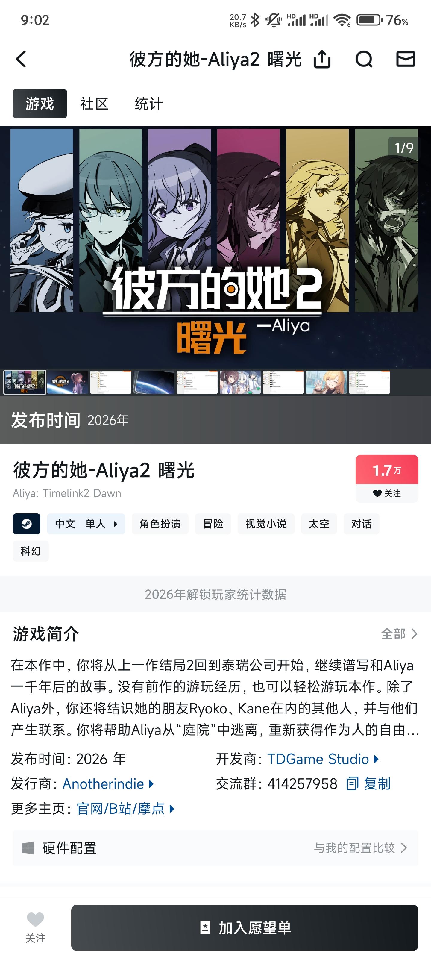 亲爱的COSMOS,《彼方的她-Aliya》一期众筹余量将1月24日下午五点上架印鸽。COSMOS可搜索“印鸽”微信小程序进行购买。商品详情可见下图。 本次满赠特典为可定制单面浮雕烫亚克力票根,需要在确认收货之后,凭兑换码在“印鸽”小程序上联系客服定制(兑换码满118发放,COSMOS需要将订单发送至publish@tdgame.studio获取兑换码)。请注意,提交兑换码之后,确收物品不能再退