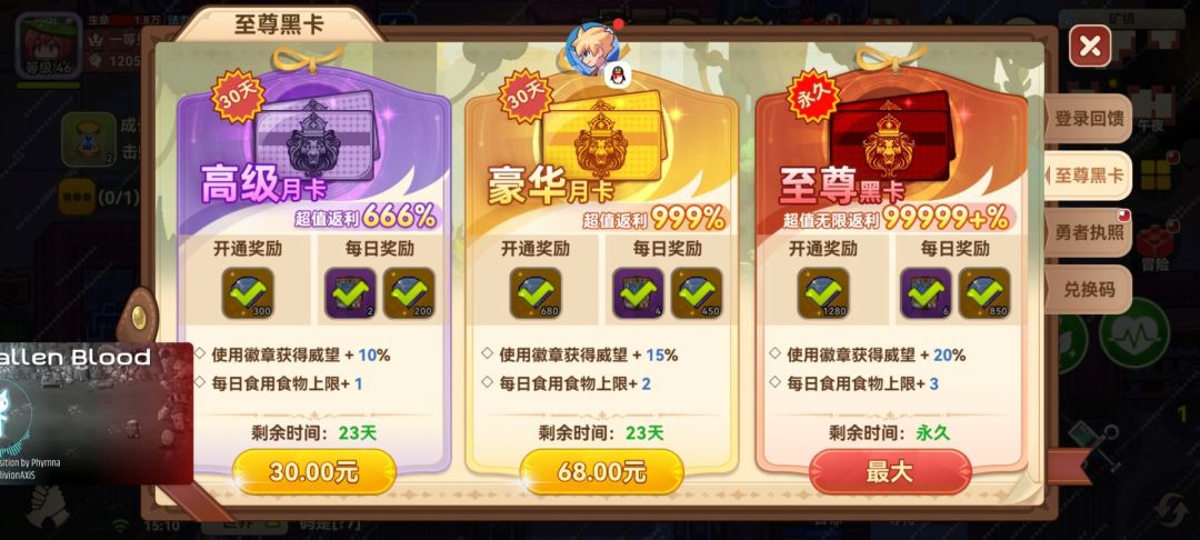 哈喽各位黑星勇者成名录的小伙伴们好呀,这里是氪金性价比攻略,主要内容为分析一些性价比极高的礼包和月卡等,那么话不多说,我们开始吧!氪金性价比排行榜:NO.1 专项礼包商会——专项礼包——高级钓竿礼包、高级锻炼材料礼包、高级威望徽章礼包、高级品德奖章礼包、高级英雄乳酪礼包、高级赫尔墨斯精华礼包以及高级专精礼包。这些礼包不仅包含高达6480的钻石,而且包含了很多珍贵的材料。比如高级专精礼包里面有足足4