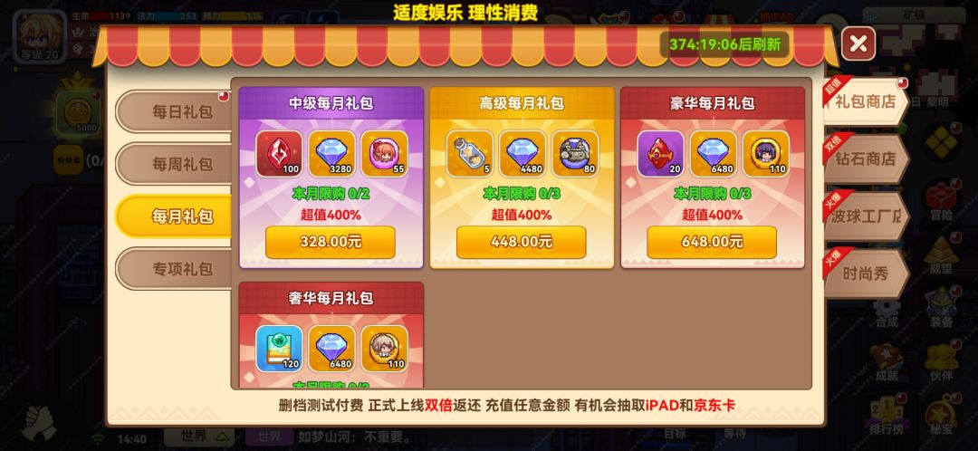 再来看豪华每月礼包,有足足110个妹妹币、20个锻造精华和6480钻石。妹妹币用于抽取伙伴,没有保底,但是可以分解多余伙伴获得魔女爱心换取黑星伙伴。在所有抽取都是蓝色伙伴的前提下,需要区区185抽保底,只需要1.2个豪华每月礼包就能获得强力的黑星伙伴了!而20个锻造精华也是非常地珍贵,其主要的获取来源是旅团远征:boss战。每天给两个精华,额外三次需要120钻石并获得3个精华。也就是说锻造精华的价
