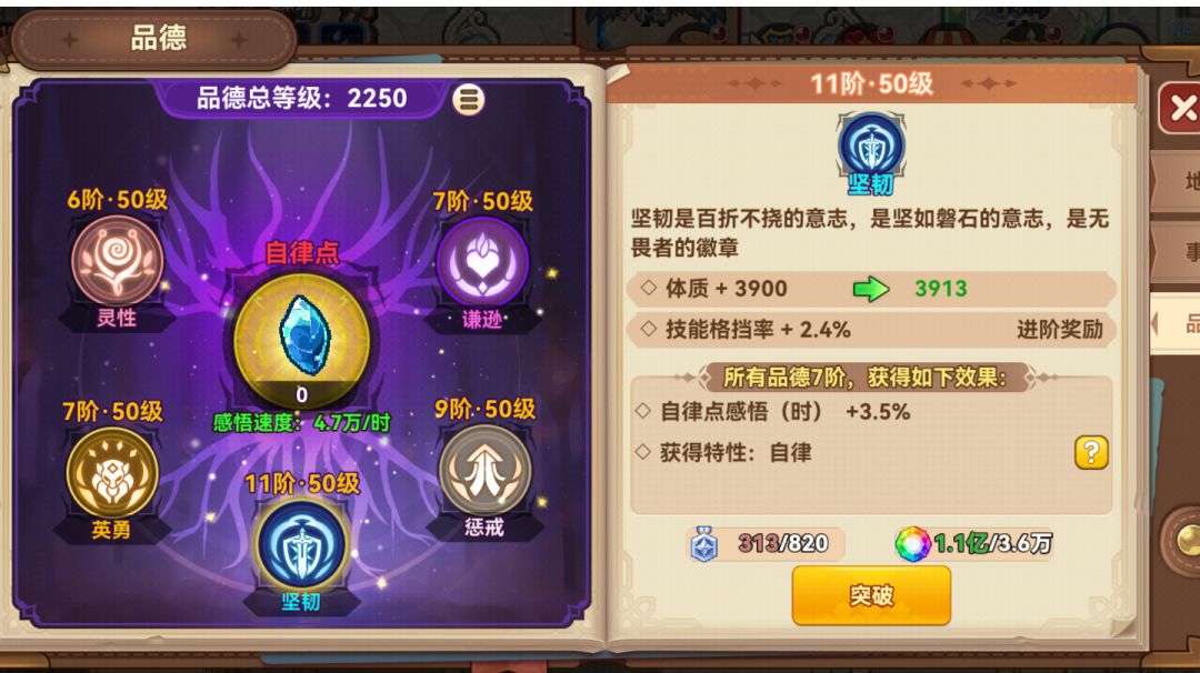 全部升到19级后,每个属性加10500点,为什么没有意志品德,意志系先天不足,低其他属性1万点[表情_豹哭] 升满阶需要12400徽章,按每天家园入侵给40个计算,最多需要310天点满一个品德,5个全点需要1550天。嗯,只要4年就能全点满了 如果氪佬玩家选择氪服困难,那么氪满一个品德需要5个648的专项礼包,就是3240元,。全部5个品德则是25个,一共16200人民币。