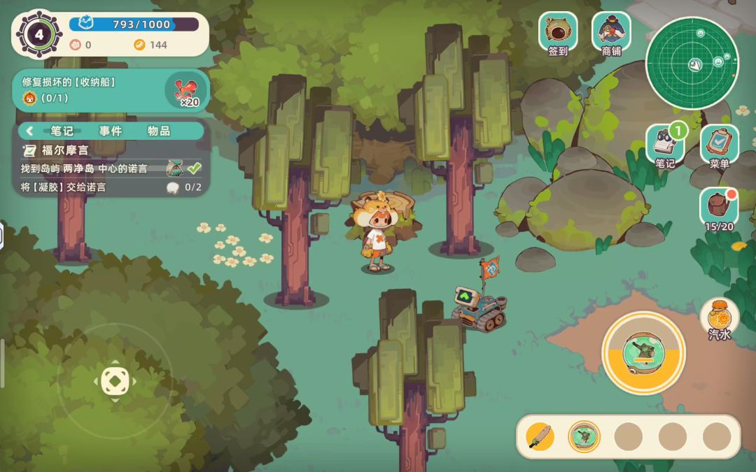 图一,拿到备用电池交给机器狗。然后返回阿姆斯特卡岛z。 图二,把左边两个火点了,来到中间对话,和放鱼。 图三,来到树桩对话,第一章结束。 #寻海之旅TapTap测试版