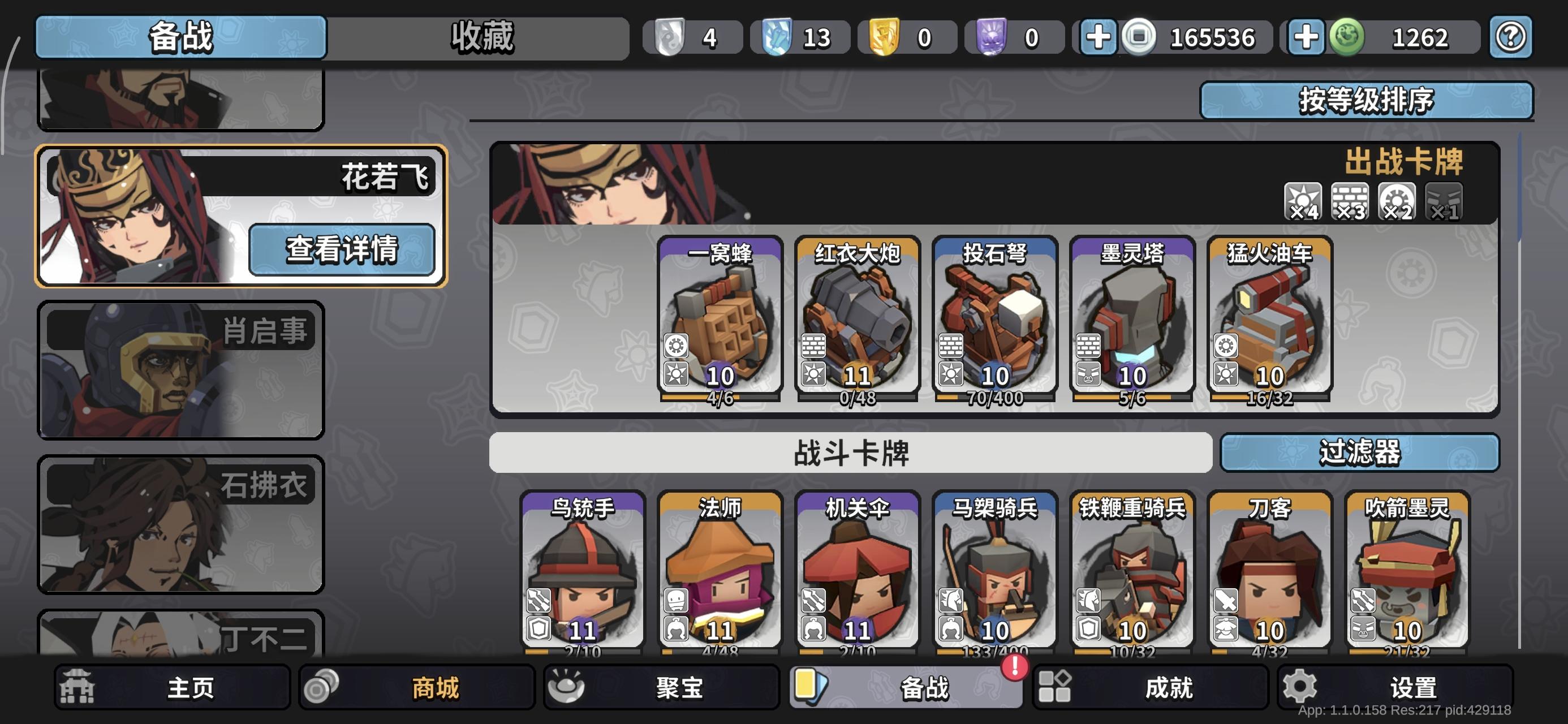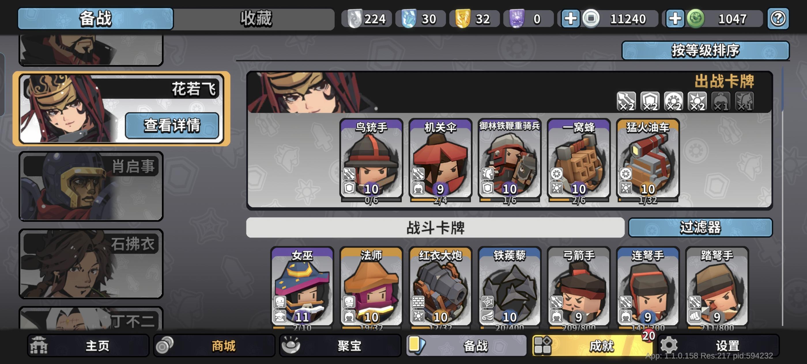 第一套花若飞:鸟铳手和机关伞,凑射手羁绊。一窝蜂加火油车,凑器械神机羁绊。补空缺用的重骑兵,和鸟铳手凑铁卫。第一波敌人倒计时结束之前把一窝蜂,上到两个数量。第二波敌人倒计时结束前把鸟铳手上到和一窝蜂差不多的等级在把机关伞点出来凑数就差不多了,第二波基本都是两路所以鸟铳手和机关伞守一路,一窝蜂单独守一路。第3波开始凑其他的基本或者主要升鸟铳手再是一窝蜂,再升级机关伞然后油车最后重骑兵。最终
