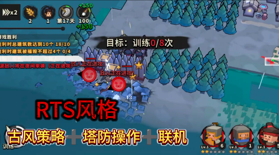 水墨古风策略➕塔防手游!RST风格经典养成元素,白天发展晚上迎敌