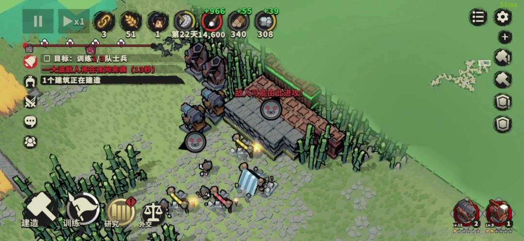 简记4:游戏第4天半 主C部分民宅已建成 游戏人口来到14 墨水储量达一千 产量达一千 预计木材产量达70简记5:游戏第5天 花费经验选择资源以获得40木 选择解锁城镇中心Ⅱ(如图为12级城镇中心)可由其他玩家升级 点出石墙 向着墨巢方向适度拓展地图寻找石头(此时其他人主要负责开图_向着墨潮方向)简记6:游戏第六天点出采石场Ⅰ 继续寻找石头 和进行人口拓充(放田放民宅 )