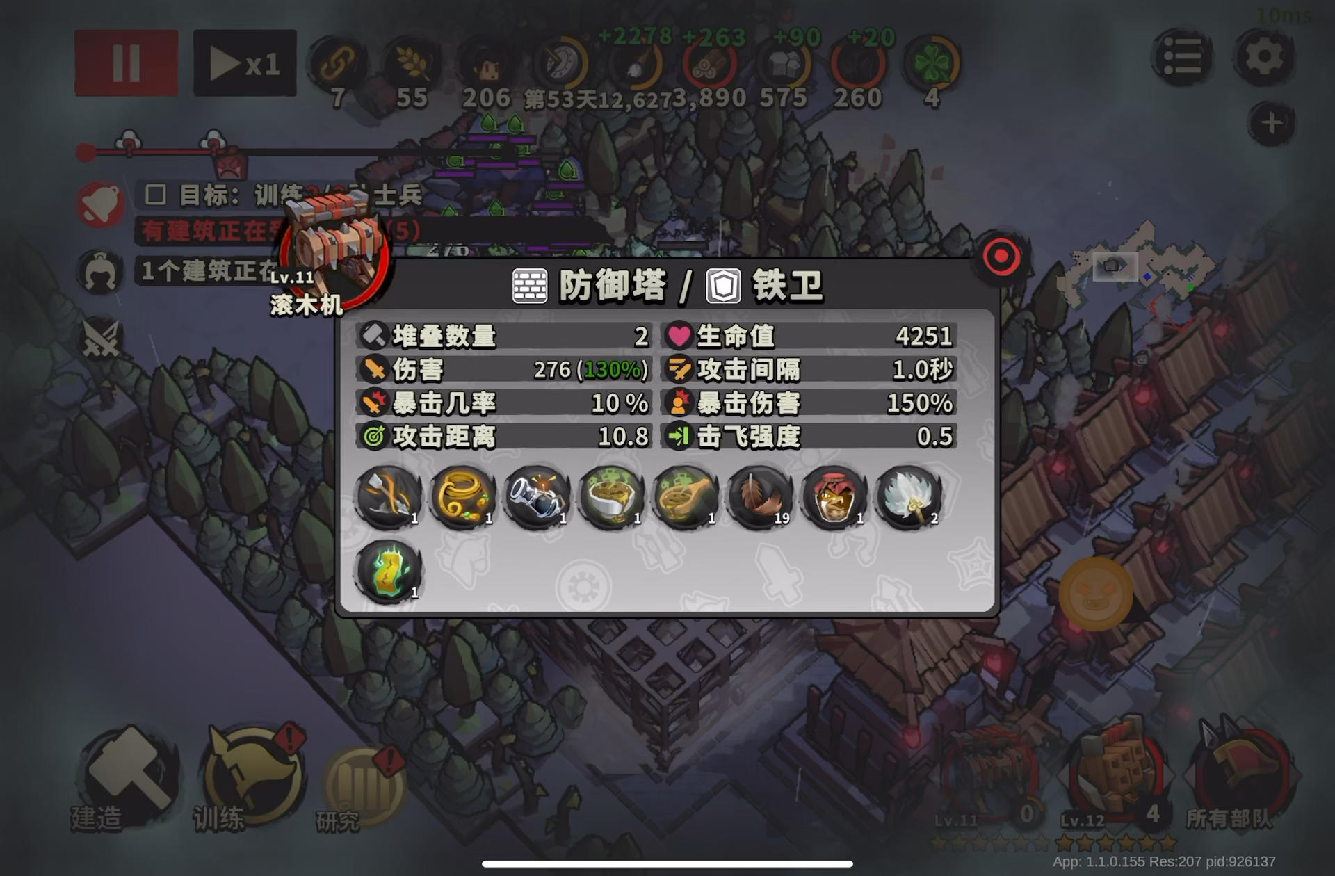 视频爬的250层,用的肖启事。速刷最难的只有第一波,第一波结束基本就是挂机放大炮或者找叶的时间。第一波放马前最好搞到石资源点,可以拿简石,猎人迷宫基本看见就拿,放马前升二提高资源上限。有石的话基本石墙自由,没石就拿二本后的资源,里面有石够做一两层石墙。需要注意的是放马前点出大炮消耗后,放马可以回复一个。升战斗卡牌在放马后,怪物赶路的时候进行,包括猎人做民居这种为了升卡牌而进行的操作。在第一波结束时
