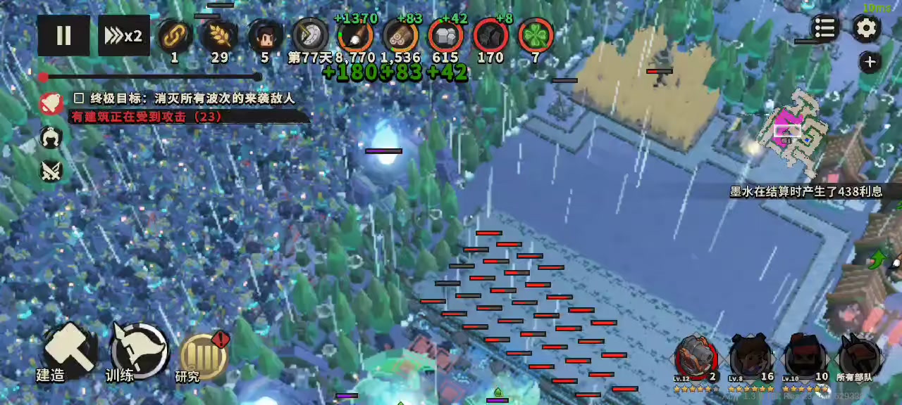 每天500玉璧真香。 卡牌配置,任意英雄都行,火炮手,女巫,三任意防御塔。 开局50,找到一个水边住宅,然后建个屋子。 第二天,找剩下水边住宅,建完,剩下的钱继续造屋子。 第三天,第一波怪快到眼前了,钱出火炮手,再升一级,出金选金,没金随意,只要是伤害就行。 记住这里只升一级就能顶住第一波,第一波打完,应该是第五天,钱400+怪在路上,升级大本营+3, 然后就全资源堆女巫,直到守完第三波群怪。 这