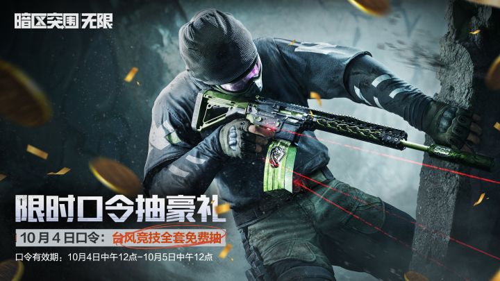 假期上暗兑好礼!10月4日限时福利口令码发布:台风竞技全套免费抽口令有效期:10月4日中午12点-10月5日中午12点先锋们只需扫描图片内二维码并输入口令,即可兑换福利!每日将有1位幸运先锋获得【4张赛季典藏进阶手册激活卡】,等于免费领取一整年的赛季典藏进阶手册! 各位先锋请注意:● 请各位先锋留意每日发布的口令码兑换时间(海报中有标注),超过兑换时间将无法在页面进行兑换;● 每个口令码