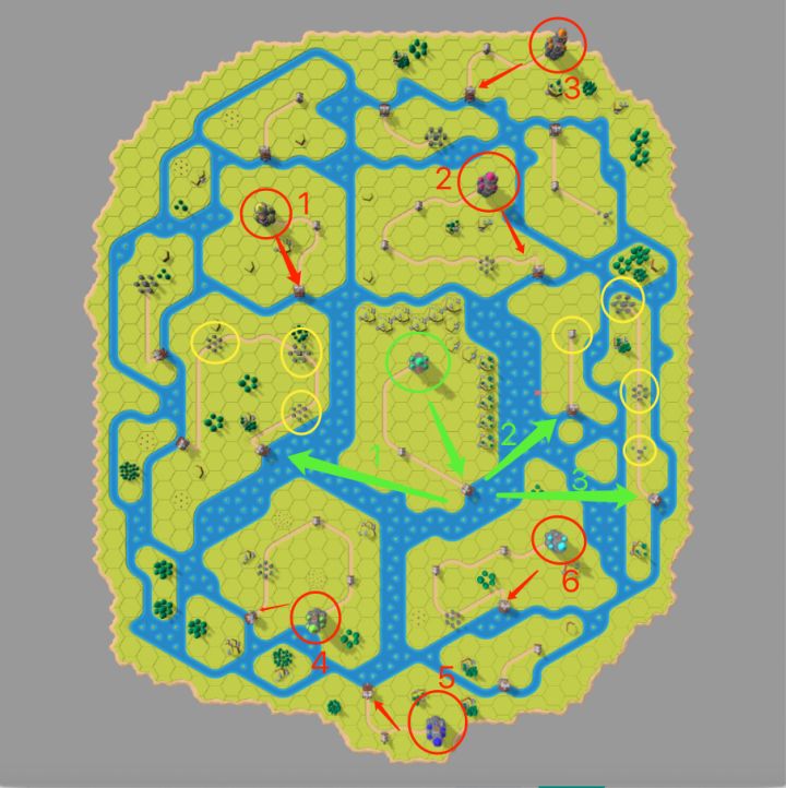 各位冒险家们好呀~今天为大家带来首期精选地图推荐!在茫茫图海中,我帮你找到了这些不容错过的精彩作品,快来看看吧!这张地图是今天新出的一张新地图,从俯视图上可以看出是一张以水路为主的地图哈!作者:小新地图规模: 中AI:困难无炸弹适合接触游戏不久,但又觉得战役难度不够的玩家哈分析:一共有7个基地,分上中下3层,玩家基地呆在中间,上方为蓝方,下方为红方,玩家被安排在中间到底如何才能突出