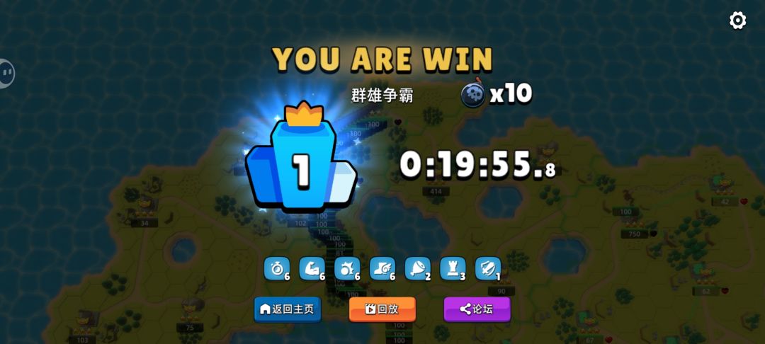 并非忘了录,因为结束了有回放,但我不想等二十分钟了。 难度有但不大,守好了自己的位置,让其他的人机互相打。 注意的就是塞兵,跟无底洞一样塞,基本上守住一个城得付出三四个城池的兵力。 有需要完整视频的可以发在评论区。 在打王座争霸的十颗炸弹,有点难度,我手拉的不快,所以可能得要很久才能打下来,待我多尝试一些思路然后再发布视频。