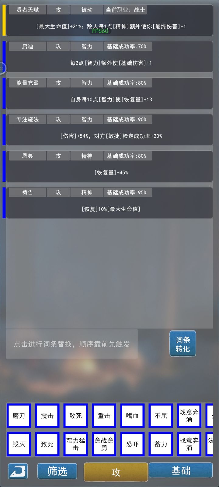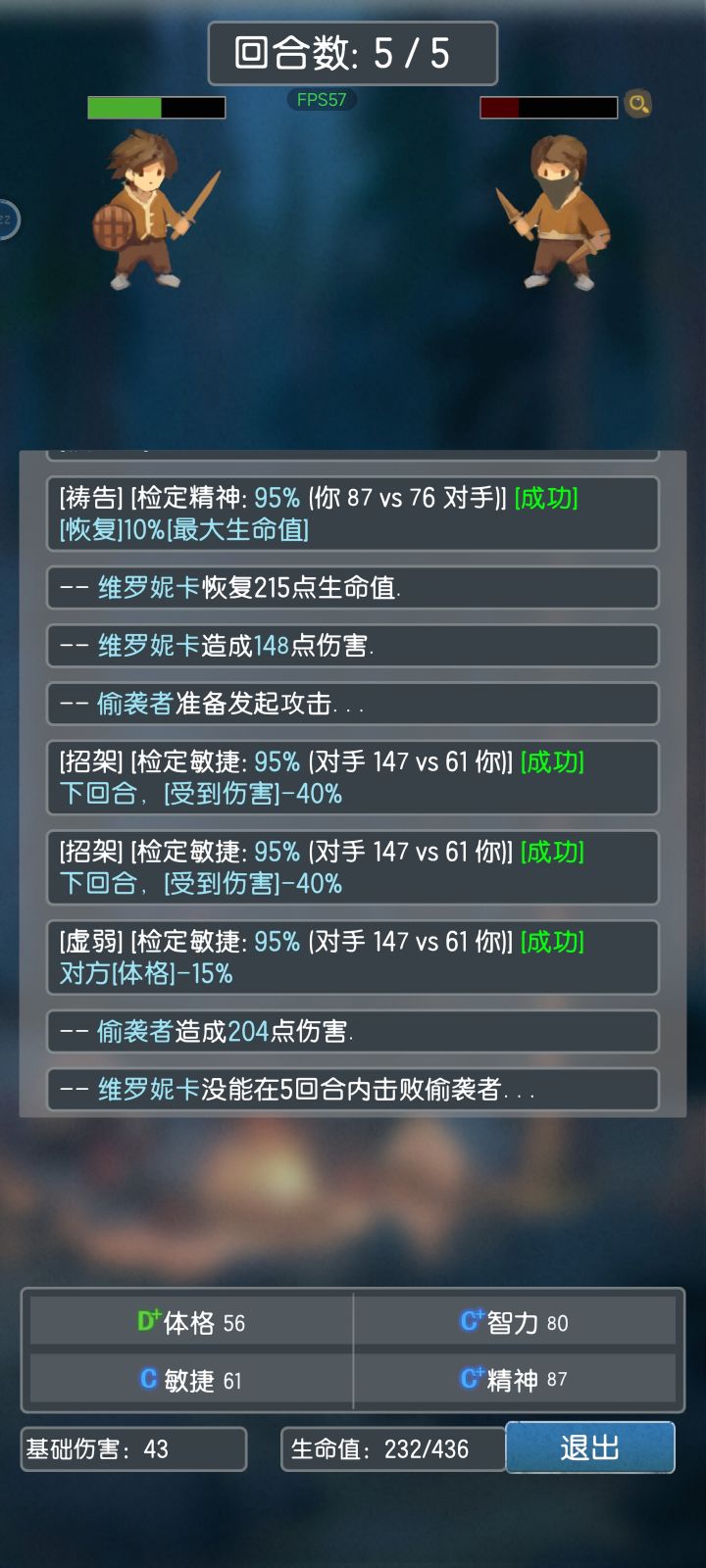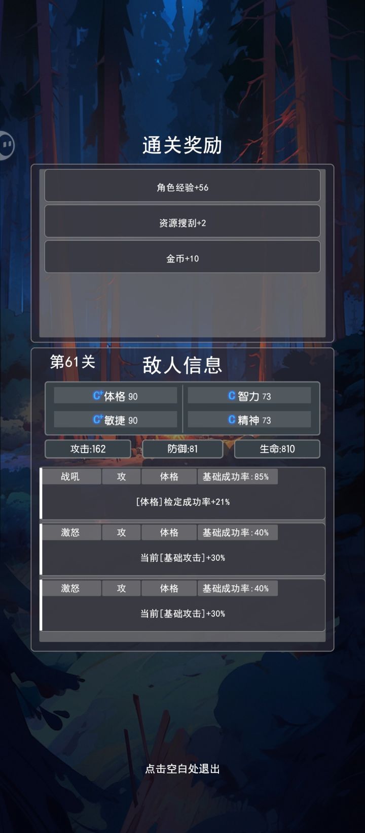 卡关了,必须攒一波扫荡看能不能刷到高级技能了感觉有五回合赢不了就算输的机制在,减伤治疗的存在都没什么意义。各种属性只决定roll点的成功率。输了没惩罚似乎最有性价比的就是死堆攻击力,词条有加伤无所谓能抗一波不死就行,争取两回合结束战斗