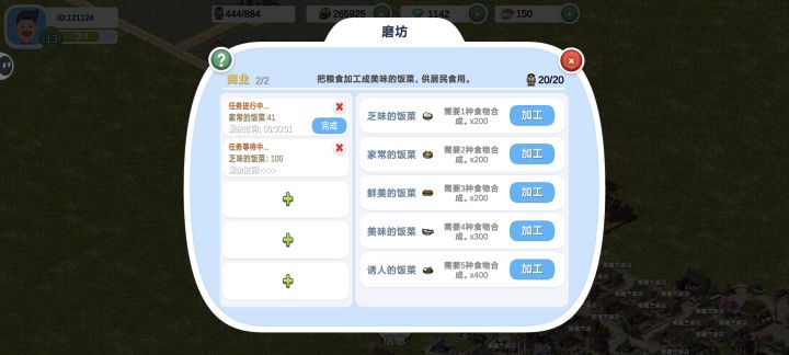 乏味的饭加工一次需要200个水稻,家常的饭加工一次需要200个小麦加200个水稻小麦水稻可以在商店买,买了之后要在商店使用,使用后才能进到背包里加工在磨坊加工有饭才能收取税收。##一片良田