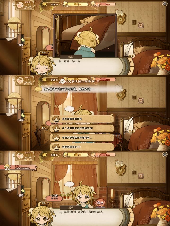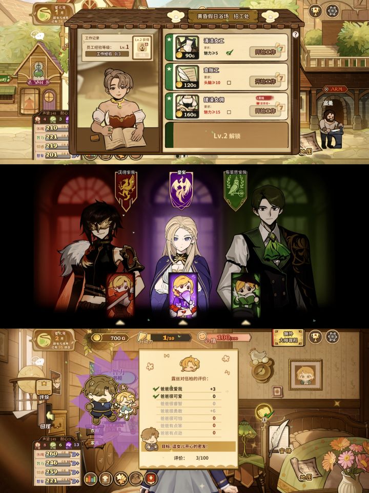 本来想打火山女神结局的,但好难就放弃了。优:1画风好看2人物互动挺有意思的3养成很有 成就感4风格很治愈性价比我觉得挺高缺:1玩法单一2单纯属性值的堆叠没有体验感3结局和养成过程不对应总的来说,已经比我玩过的大部分养成游戏有良心了。最后附上美美女儿的照片