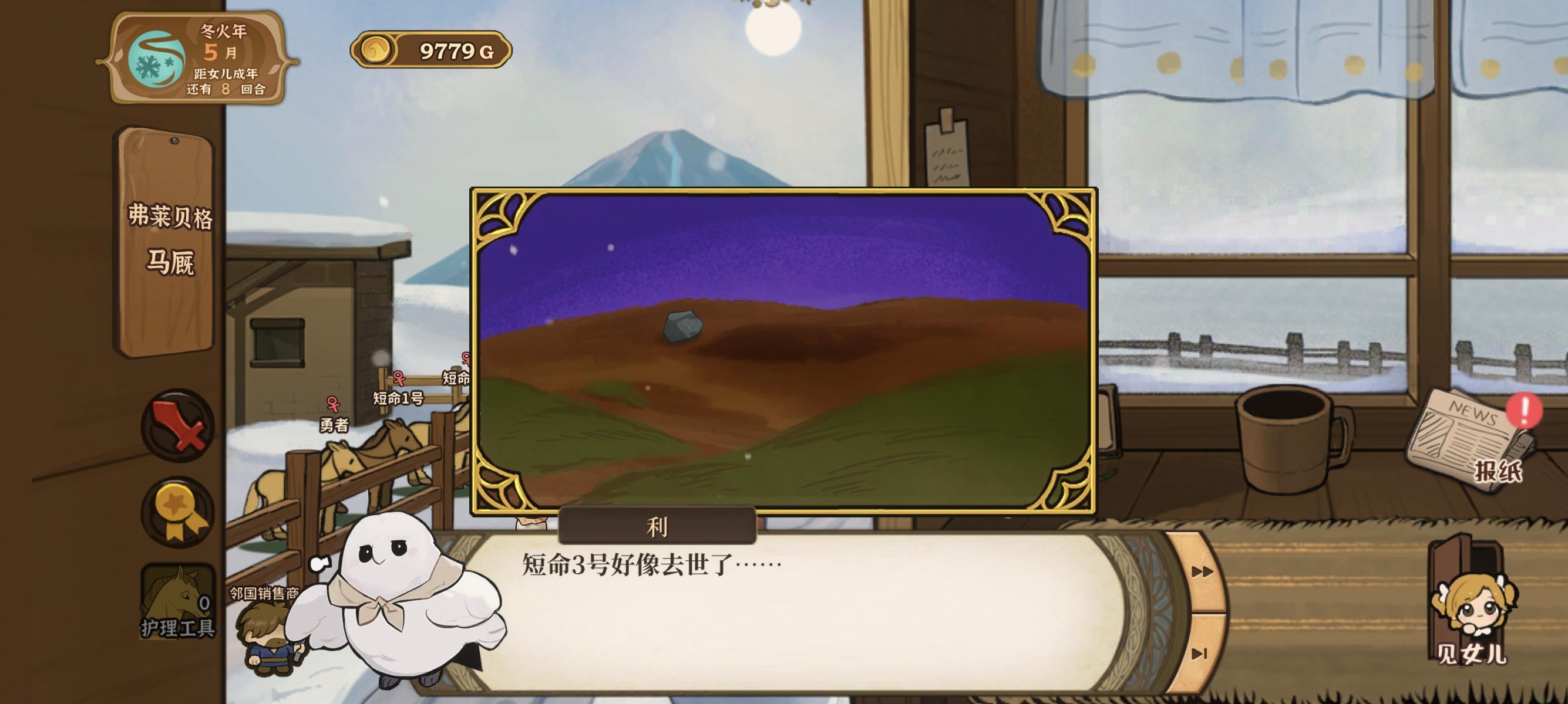 卧槽,这啥呀,我以为在妈妈那儿选择惩罚雷贝莎他就会挂掉然后就不能在一起了呢,我还特意把铁匠好感降了一下让莫娜排第二打算娶莫娜了,结果他结局咋是住院治疗啊,还有我女怎么像女鬼一样,你清一点啊女儿他用的可是你姐的壳子!!好吧,其实在打妈妈的时候我就已经有点不妙的感觉了,把雷贝莎好感加太高了然后他话里化外都是爱我女,连我女的姐姐都说他爱我女……这正常吗,姐姐你不管管吗#火山的女儿再度重逢