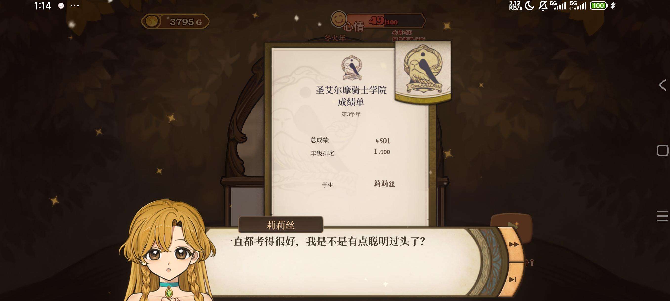 因为很喜欢骑士领主 所以选择攻略她 结果也是不负所望 两个人和和美美的在一起了一周目没有打怪选择文学方向 所以都没打到最终结局二周目哦吼吼 就打出这结局了 世界线的收束而且有很大的惊喜 !如果没打过这个的可以试试走骑士方向 记得多打怪!头疼是病得治!