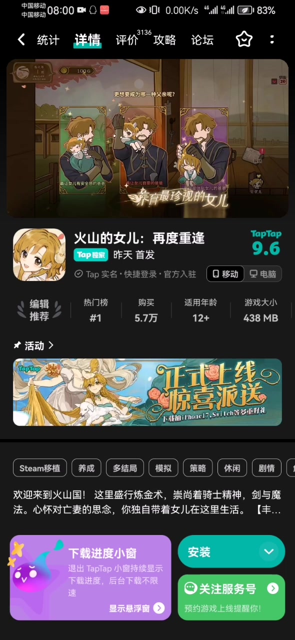 《火山的女儿》手游版终于上线啦!现在只要15元就能带走可爱的女儿 cr:笙歌不是神鸽QAQ 已获授权