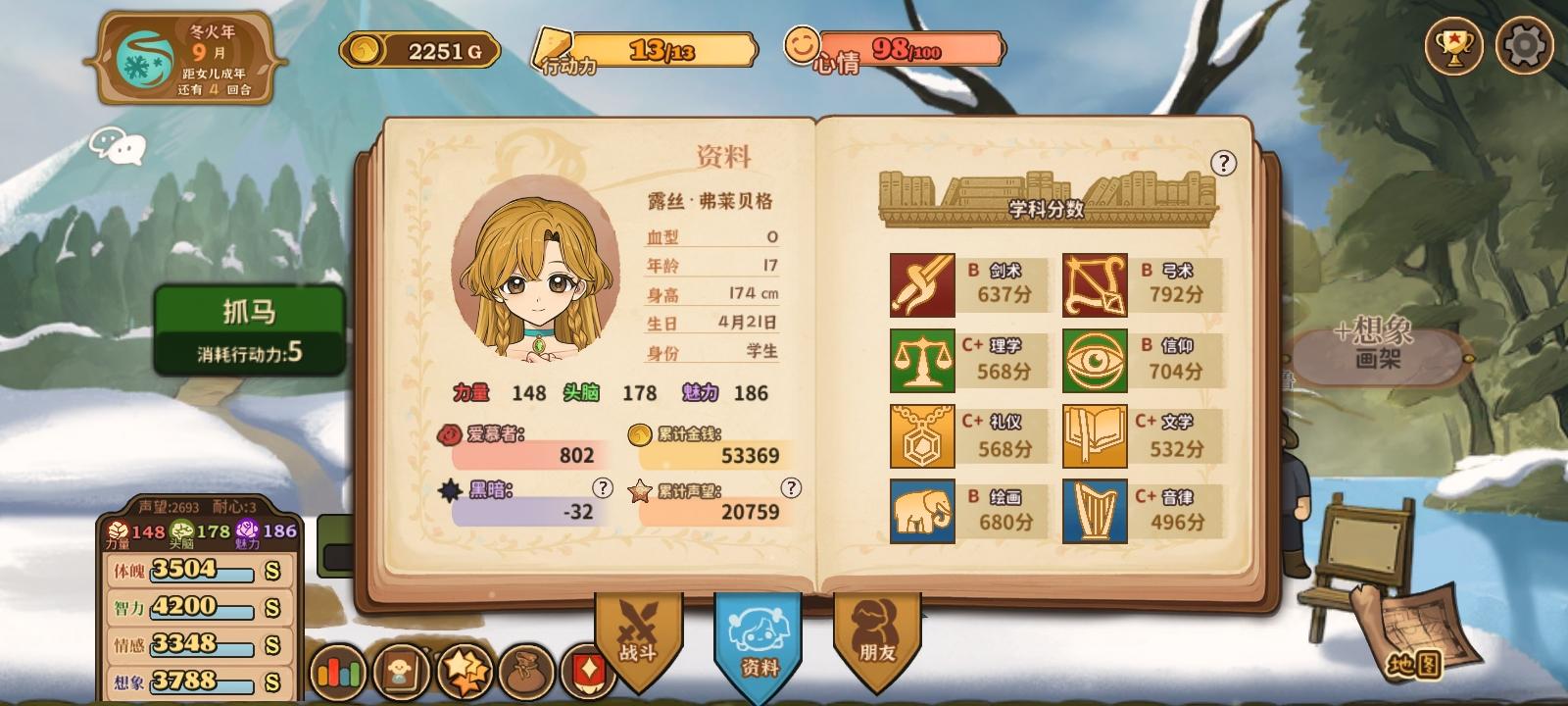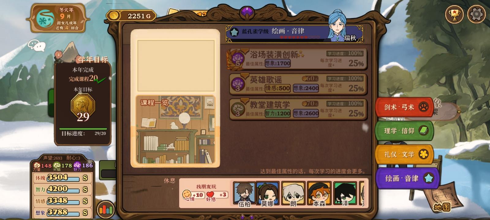 好不容易把所有的属性都刷够了 结果音律就差一点点没有课上了 没有用 有没有好办法能把它补齐 真的很想打女神结局