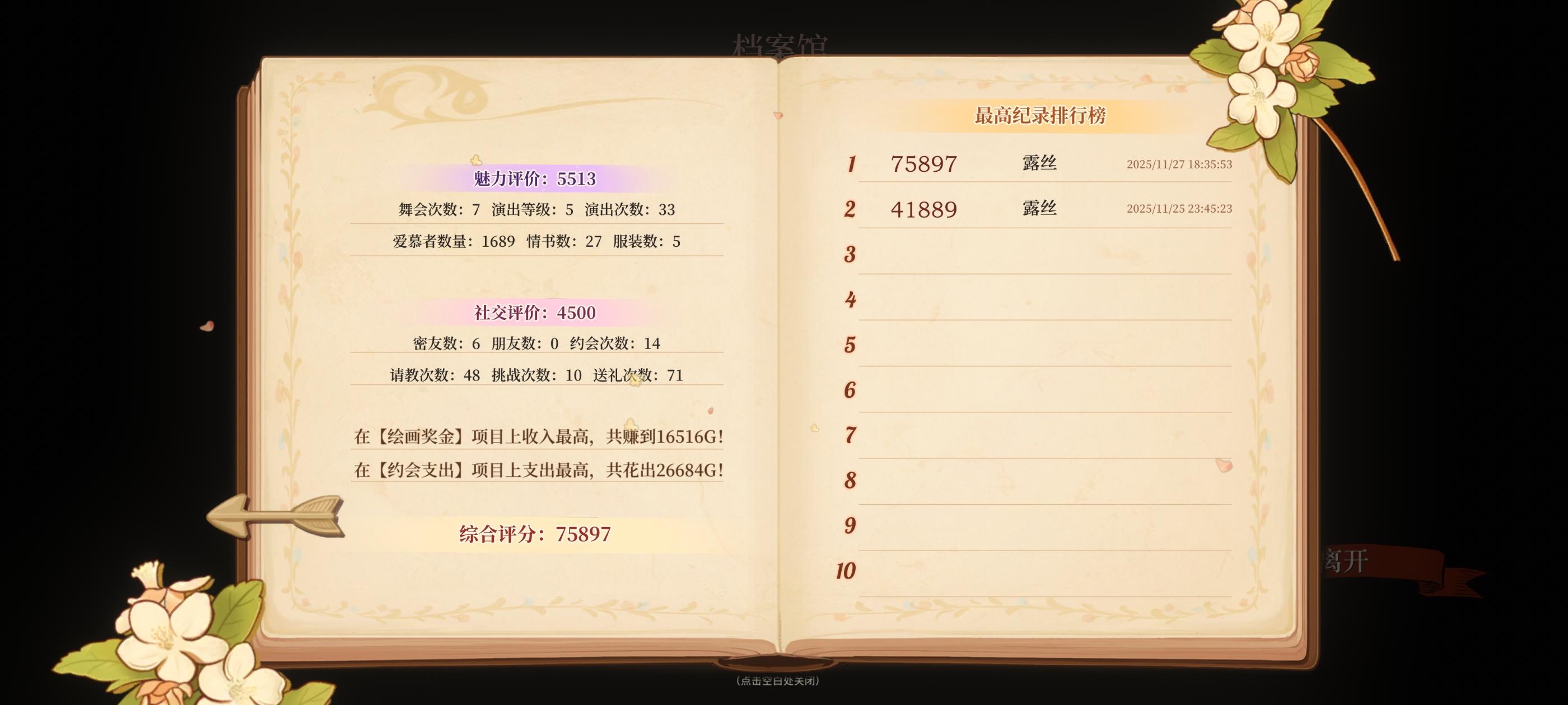 首先本攻略不使用bug,力求各个版本都能使用。其次本攻略尽量不透露剧情,以求各位父亲们感受剧情。最后这个攻略只是我通关后的回忆所写,如果有出错的地方欢迎评论区指正。附我的通关存档截图。由于字数受限评论区里说。#浅评一下 正文部分:第一,也是最重要的数值部分,我们一条条来看。我们总共要完成五件事:1.力量,头脑,魅力到90。每一项的基础课程全部学完,买点大师课程随意学学就够了。并且力量太低的话