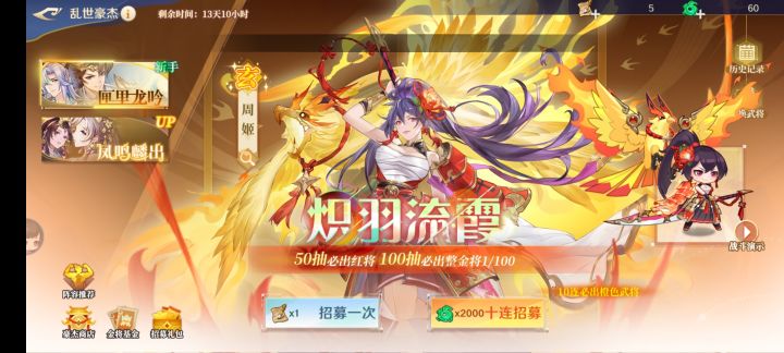 省流:蓝色分解,紫色开图鉴分解,黄色SR,红色SSR,金色UR,高级点将20抽保底黄,红色0.5%300抽没见过,金将招募十连200r,普通玩家第一天能到80、90万战力,苟托快400万战力,通行证很多推图推塔抽卡什么的,不贵6元12元但奖励很一般