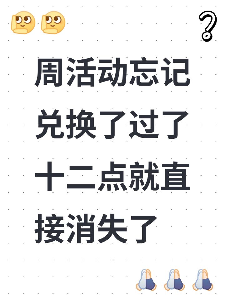 周活动忘记兑换了过了十二点就直接消失了