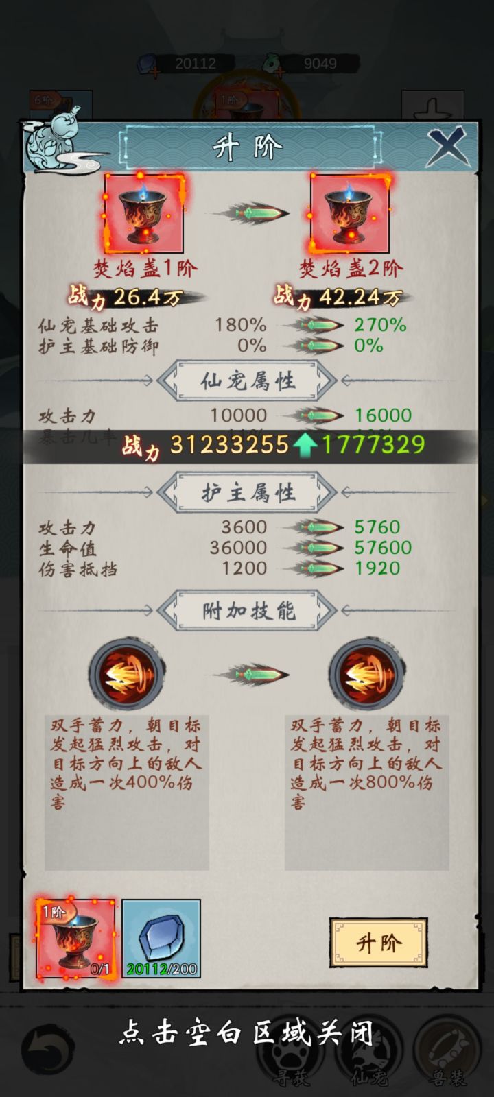 9个宠物的本命兽装加普通兽装能给2000w战力?