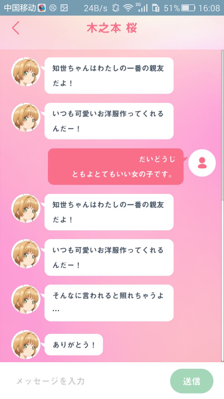 提到了知世是个很好的女孩,小樱就十分激动,这什么意思,帮我翻译一下。