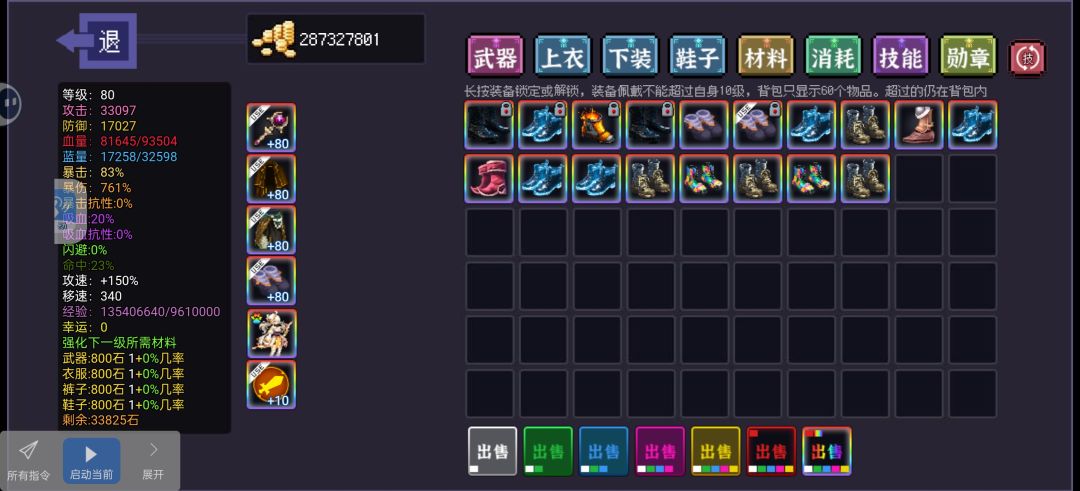 开局首先装备装上去,可以强化,再领礼包,不然打不过,50以下无脑刷绵羊,经验药水全部50级以后用,武器装备首选森林副本的花葬,后面刷等级,(材料换,可以比当前等级加一点)可以用到毕业,骑士70才能爆套装,别白刷了,幼龙巢穴换令牌,兔子买钥匙,樱雪换魔法钥匙,史莱姆刷电池,刷装备一定要去魔女换幸运,天雷要魔女换渡劫丹,随便刷刷20小时玩完,#九劫速通
