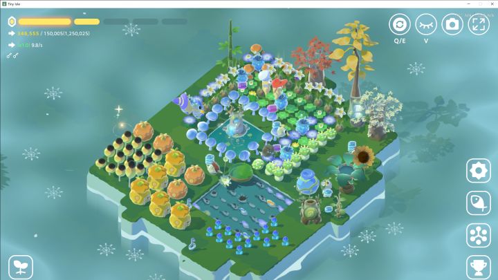 游戏整体节奏还是挺慢的,可能因为毕竟是放置挂机,就是慢慢建造。因为我显示器有3个,所以我比较喜欢把游戏弄小窗口,随便扔到哪个副屏上挂着,偶尔看一眼也挺治愈的,有点像电脑里的生态瓶。所以……我怎么感觉有点想弄上点白噪音之类的。或者说季节和天气手动切换,然后每个季节or天气,都有可以随意搭配的BGM+环境音。