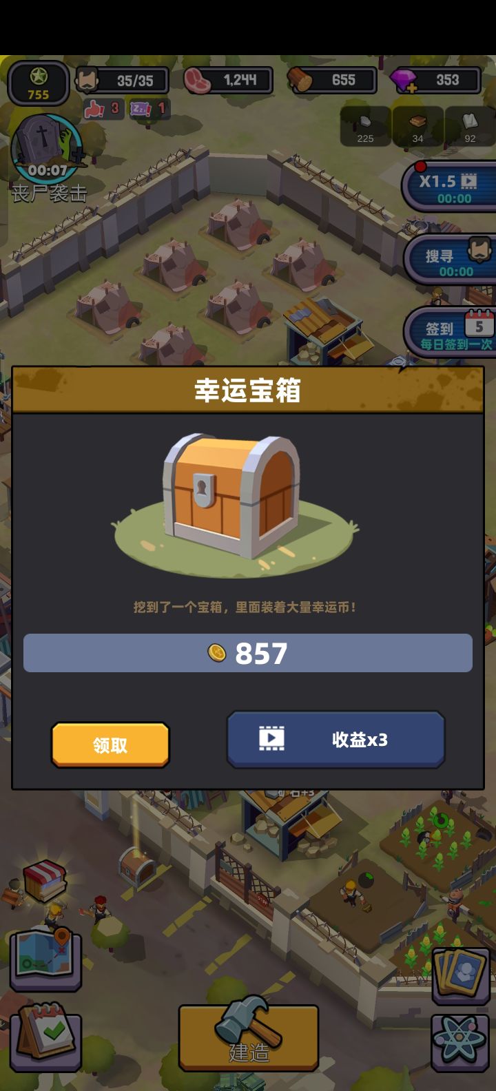 还有一些奇奇怪怪的bug,挂机奖励大砍一刀,资源存储超上限,门口金币箱金额不变(仅一图,应该是随繁荣度之类的发展会提升数值的),加工厂不消耗原料,不够材料也能升级等等等等,bug很影响游戏体验,扣分。