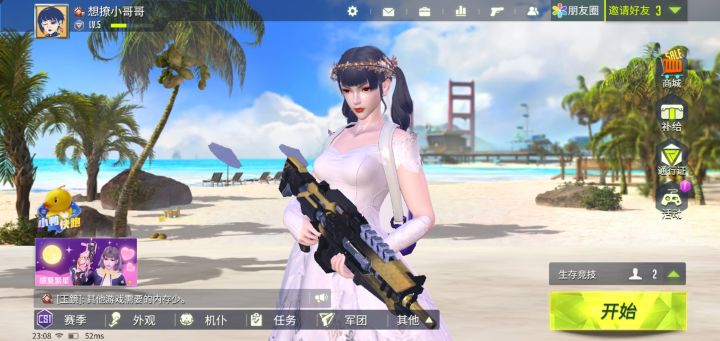 刚进游戏的封面就让人把持不住,果然夏天就是好啊。我大逃杀游戏玩的比较少,手游只有刺激战场,所以对于量子特工的一些创新还感觉挺新鲜的。比如开局自选角色还能捏脸,这也太刺激了。可是试问谁不喜欢小姐姐呢?于是我开始了捏脸。新手教程着实把我惊艳到了,这么多特效动作(五毛一夸,括号内),什么爬墙翻滚机仆技能,太高级了点。不用蹲下打绷带就太爽了,我可以把打绷带的时间也拿来跑路了(苟活流玩家,站在圈边,跑圈