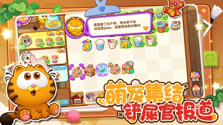 😻《加菲猫家族:萌宠集结》预约中,萌趣来袭~🎮游戏类型:养成、女性向、模拟经营、休闲装扮🌟经典IP新体验:加菲猫家族欢乐登场,唤起童年回忆,谁能拒绝可爱的它们?🐾救助流浪萌宠:通过二消玩法、家居装饰和动物故事合成元素,为流浪动物提供医疗救助,给它们一个温暖的家。🌈轻松互动养成:与萌宠们亲密互动,培养感情,解锁超多趣味内容,感受治愈快乐。🏠自由装扮打造:不仅能为萌宠精心打扮,还能自由装饰房