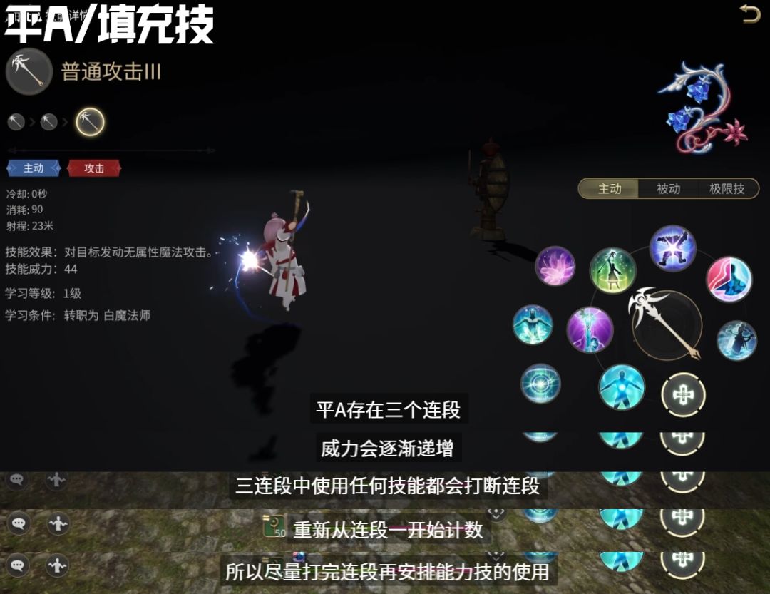 内容原作者:顾跑跑 原视频BV号:BV19ykmYiEJa *本条内容已获得原作者授权,还请大家多多支持原作者!三连投币支持! OK,那么最后要说的就是2个治疗职业了! 首先先来说说“白魔法师”吧! 白魔的技能效果其实整体和端游都差不多,但实操手感完全不同!首先是平A,有3段,全程单体。这个平A就是白魔的主力输出了。 【救疗】,是一个单体的恢复技能,释放时还有概率给目标附加再生,持续回血。它最重要