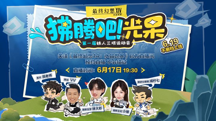 《狒腾吧!光呆》FF14手游第一届铁人三项运动会即将开启。美术田老师带领豆芽徐大虾、豆花小缘、“狒”研社咸柠七老师,挑战策划VV的狒圈顶流梦之队。6月17日晚7:30,相约《最终幻想14:水晶世界》官号,围观第一届冠军的诞生,记得预约直播不要错过哦。✧官方社区小程序:QQ/微信搜索“FF14手游官方社区”即可进入,找亲友、抓策划、独家<情感动作-神典石>来就送!※如无法打开小程序,请将QQ