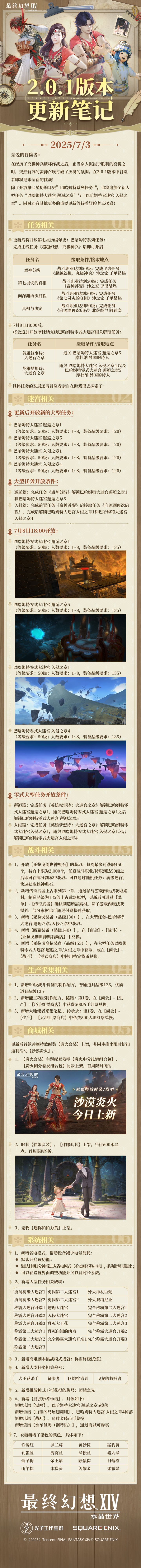 亲爱的冒险者:为了给冒险者带来更好的游戏体验,我们将于7月3日05:00~07:00期间进行停服更新,本次维护预计持续2小时(最终时长以实际情况为准),维护期间无法登录游戏,请冒险者们注意合理安排时间,感谢您的支持与理解~同时我们也会持续对游戏进行调整和优化,如果您在游戏中遇到任何问题或有任何建议,欢迎向官方反馈,我们会及时收集和处理。 2.0.1版本更新笔记如下:#ff14手游 #ff1