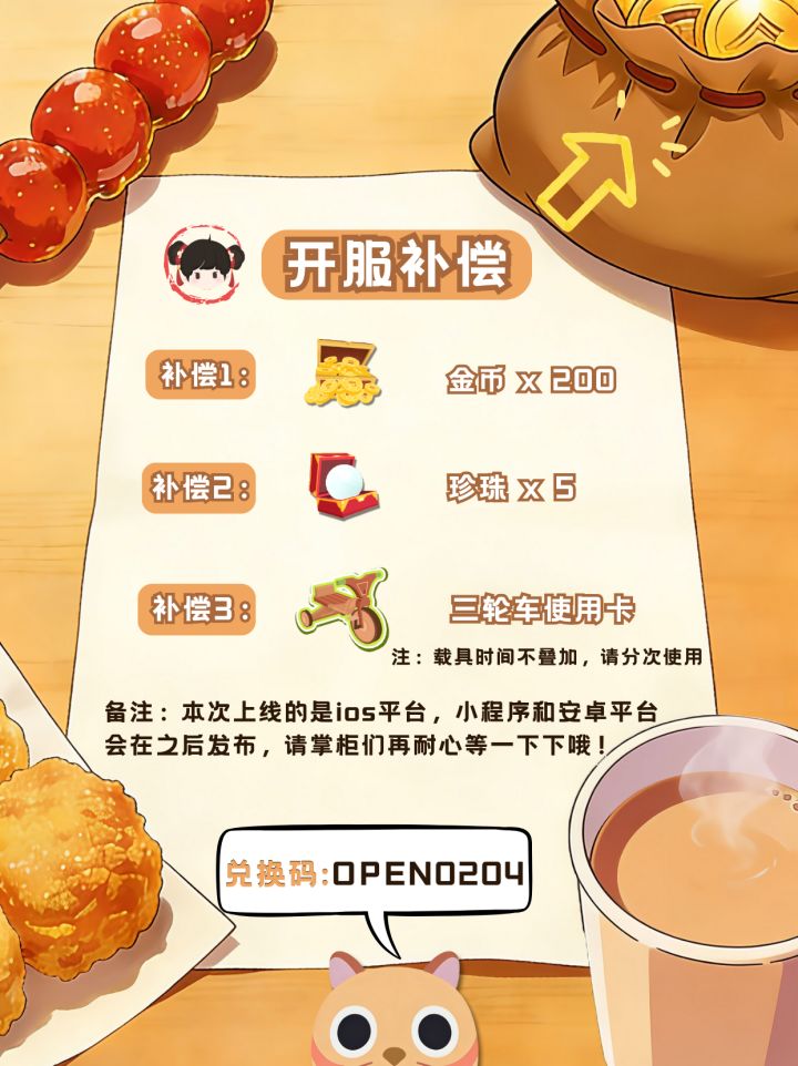 棠影我回来了!因为之前的bug 耽误了大家体验, 这段时间也收到了很多提问,真的非常抱歉。现在问题已经全部处理完成, 并重新确定了开服时间,于2月4日可以正常下载了(暂时只有ios,其他平台很快就会上)。除了开服奖励,棠影还为所有掌柜准备了一份「启动资金补偿」🎁作为重开后的开业福利,希望能让大家开局更顺一点。🎁 开服补偿内容:✅ 金币x200✅ 珍珠x5✅ 苏棠影心爱的小三轮体验卡#休闲游戏