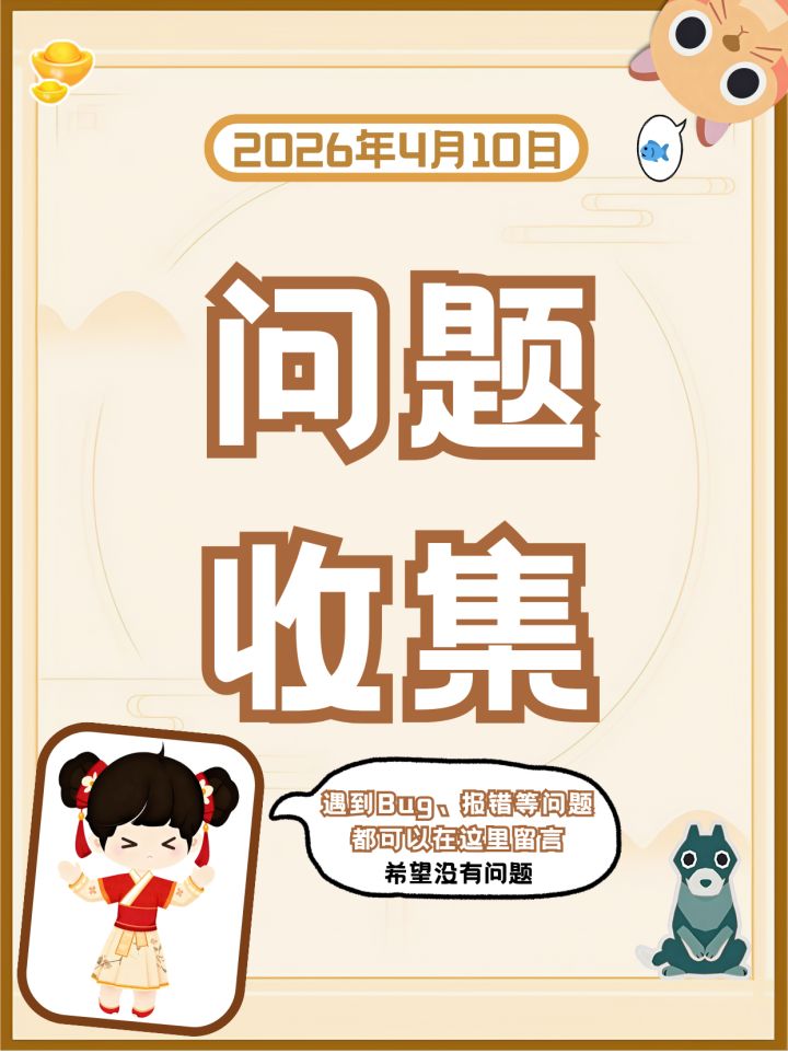 各位亲爱的掌柜大大们,因为游戏刚上线,可能还存在一些bug和体验不好的地方,给大家添麻烦了。为了能最快定位问题、修复bug,给大家带来更好的游戏体验,我们专门开了这个永久有效的问题收集帖。不管是遇到闪退、卡顿、报错,还是觉得哪里玩着不舒服、有任何好的建议,都可以在这个帖子下面留言!我会第一时间把问题同步给开发部门,进行处理!再次感谢各位掌柜的理解和包容!#bug反馈 #问题收集