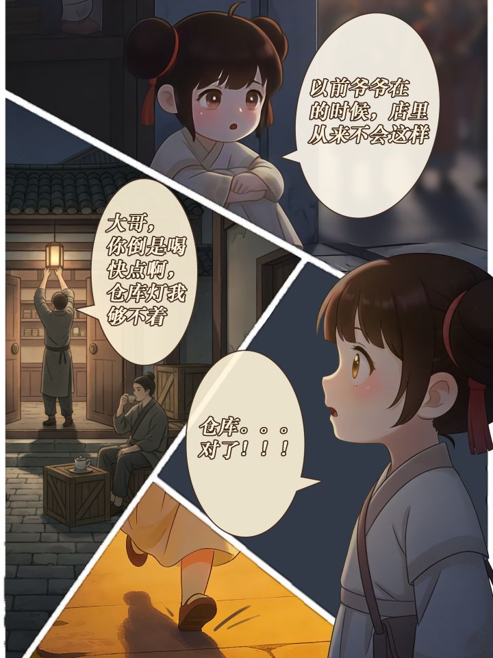 被店员赶出来后,我没有立刻离开。不是不想走,只是忽然不知道——还能去哪里。🌧️。 蹲在墙角🌿的时候,看见一个普通旅人想进店,却被拦在门外🚪❌。那一瞬,我才真正意识到:爷爷的店,是真的不在了。 正当我听着街市的喧闹声发呆时,酒店侧边传来低低的说话声: “大哥,你倒是喝快点啊,仓库这灯我够不着!” “你急啥啊!” 话音一落,我心里猛地咯噔一下。“仓库” 两个字,像被谁轻轻推了一把,忽然间勾起了模糊的记