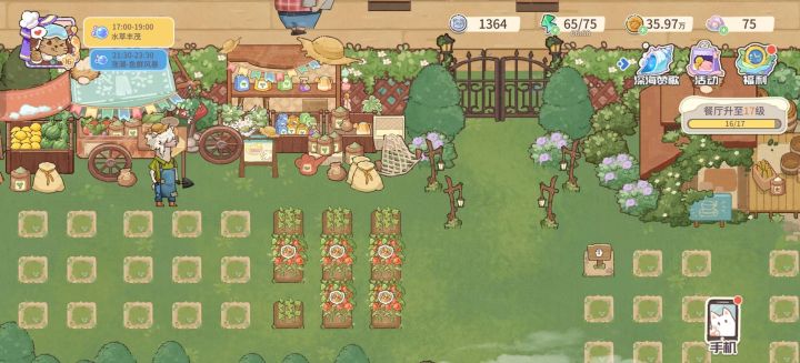 种田我还没玩很深,就在餐厅后面开了一小片田,种了点小麦和番茄。收成的时候一闪一闪的,好看是好看,就是异常状态有点多……希望能优化一下😅