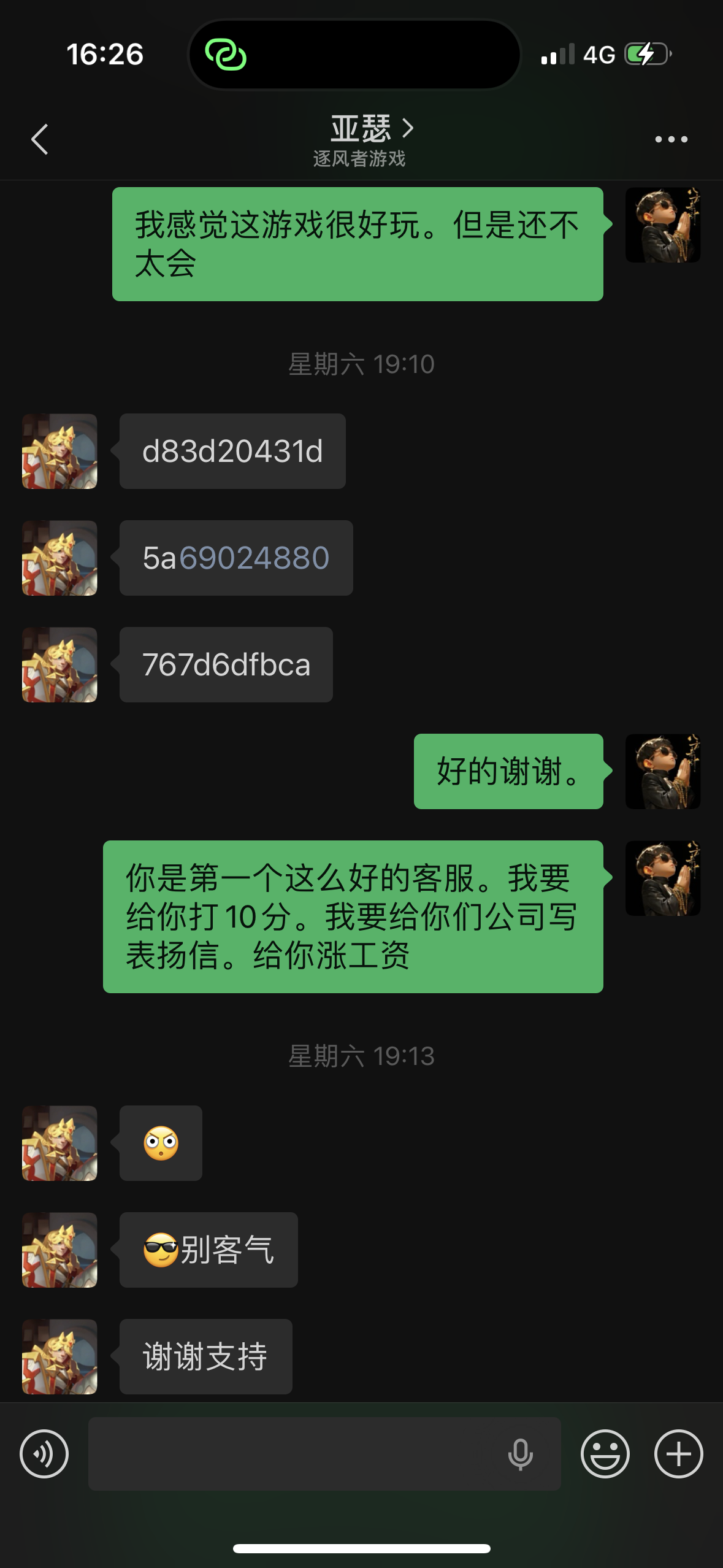 玩还可以不肝不氪。而且客服也很好。说要礼包马上就给。建议给涨工资
