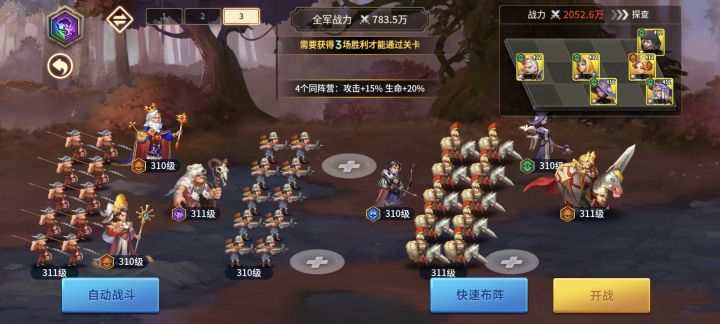 #王国传承 宝藏之地配队,关于后期的配队选择,满星开始,队伍就不要要召唤流了,召唤流很难打穿宝藏之地。这里我推荐亚瑟王跟狄安娜跟那个叫什么奥吉尔的一人带一队,并且潜能这些拉满,第三队有点乏力,需要进行补强,不然可能等不到开始攻击队伍就崩溃。如果你不知道那个值得培养,你把星级拉满,那个战斗力高那个就更强,简单粗暴,后面把星级重置就行。想胜率,唯一的办法就是在对方没有开始放大招之前把对面秒杀