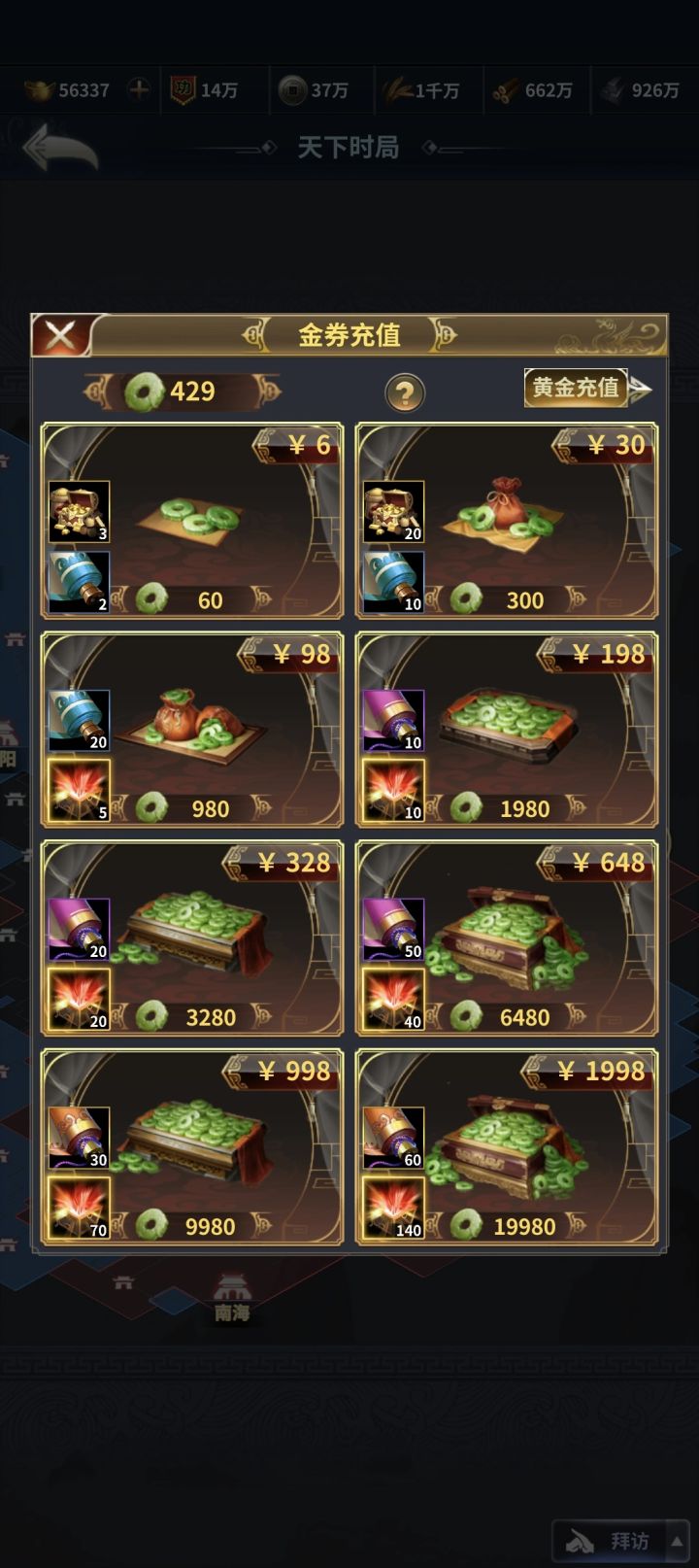 这个游戏换了很多个名字,里面的武将头像一模一样,有不少版本玩法都不大相同,不知道为什么会这样,上次玩的还叫三国之旅,氪了七八千后说上不去就上不去,这个游戏背后工作室不知道怎么想的